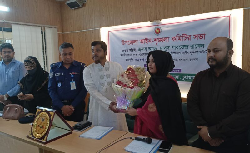 আলমডাঙ্গা উপজেলা প্রশাসনের নবনির্বাচিত এমপি অ্যাডভোকেট রাসেলকে সংবর্ধনা
