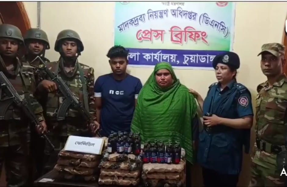 দর্শনায় ২৮০ বোতল ফেনসিডিলসহ শাশুড়ি- জামাই আটক