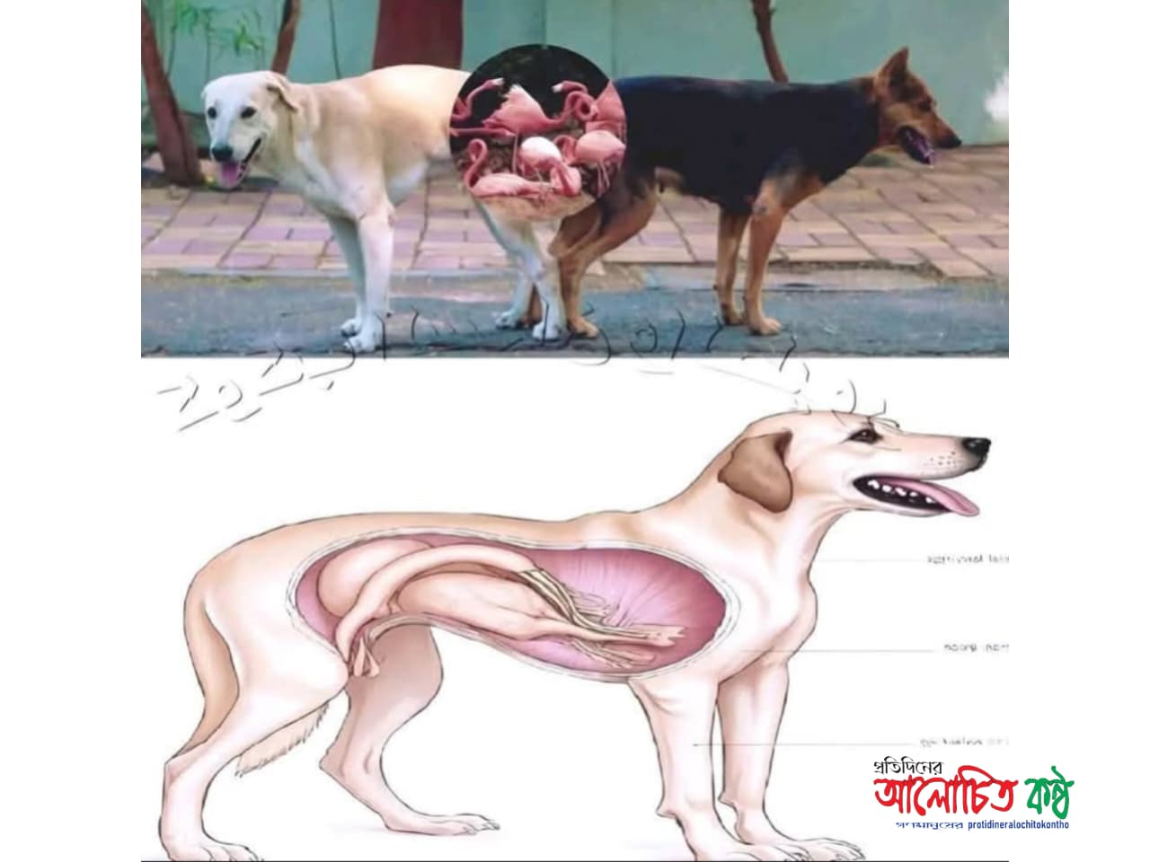 রাস্তায় মাঝে মাঝে এমন দৃশ্য দেখা যায়—দুটি কুকুর একে অপরকে আঁকড়ে ধরে আছে, অথচ নড়ছে না, মুখ দুটি আবার বিপরীত দিকে! অনেকেই অবাক হন, কেউ বিরক্ত হন, কেউ হাসি-ঠাট্টা করেন, আর কিছু মানুষ এতটাই নির্দয় যে গরম/ঠান্ডা পানি ছিটিয়ে বা লাঠি দিয়ে আঘাত করে কুকুরগুলোকে আলাদা করার চেষ্টা করেন। অথচ এটি একটি সম্পূর্ণ প্রাকৃতিক ও বৈজ্ঞানিক প্রজনন প্রক্রিয়ার অংশ, যার নাম Copulatory Tie। এ সময় পুরুষ কুকুরের যৌনাঙ্গের একটি অংশ (Bulbus Glandis) ফুলে গিয়ে স্ত্রী কুকুরের যোনিতে আটকে যায়, ফলে তারা কিছু সময় (৫-৩০ মিনিট পর্যন্ত) সংযুক্ত অবস্থায় থাকে। এই বন্ধনটি প্রকৃতির বানানো এক ধরনের জৈবিক লক, যা সফল প্রজননের জন্য দরকারি। এটি মোটেও বেদনাদায়ক নয়, বরং প্রজননের একটি গুরুত্বপূর্ণ ধাপ। তবে মানুষের অজ্ঞতা ও অমানবিক আচরণ এই প্রক্রিয়াকে ভয়ানক করে তোলে। জোর করে আলাদা করতে গেলে দু’জনেরই অঙ্গ ছিঁড়ে যাওয়ার আশঙ্কা থাকে, রক্তপাত হতে পারে, এমনকি ভবিষ্যতে কুকুরটি প্রজননে অক্ষম বা সংক্রমণে আক্রান্ত হয়ে মৃত্যুবরণও করতে পারে। রাস্তায় দেখা অনেক অসুস্থ কুকুরের এই পরিণতির পেছনে মানুষের অশিক্ষা ও নিষ্ঠুর হস্তক্ষেপই দায়ী।