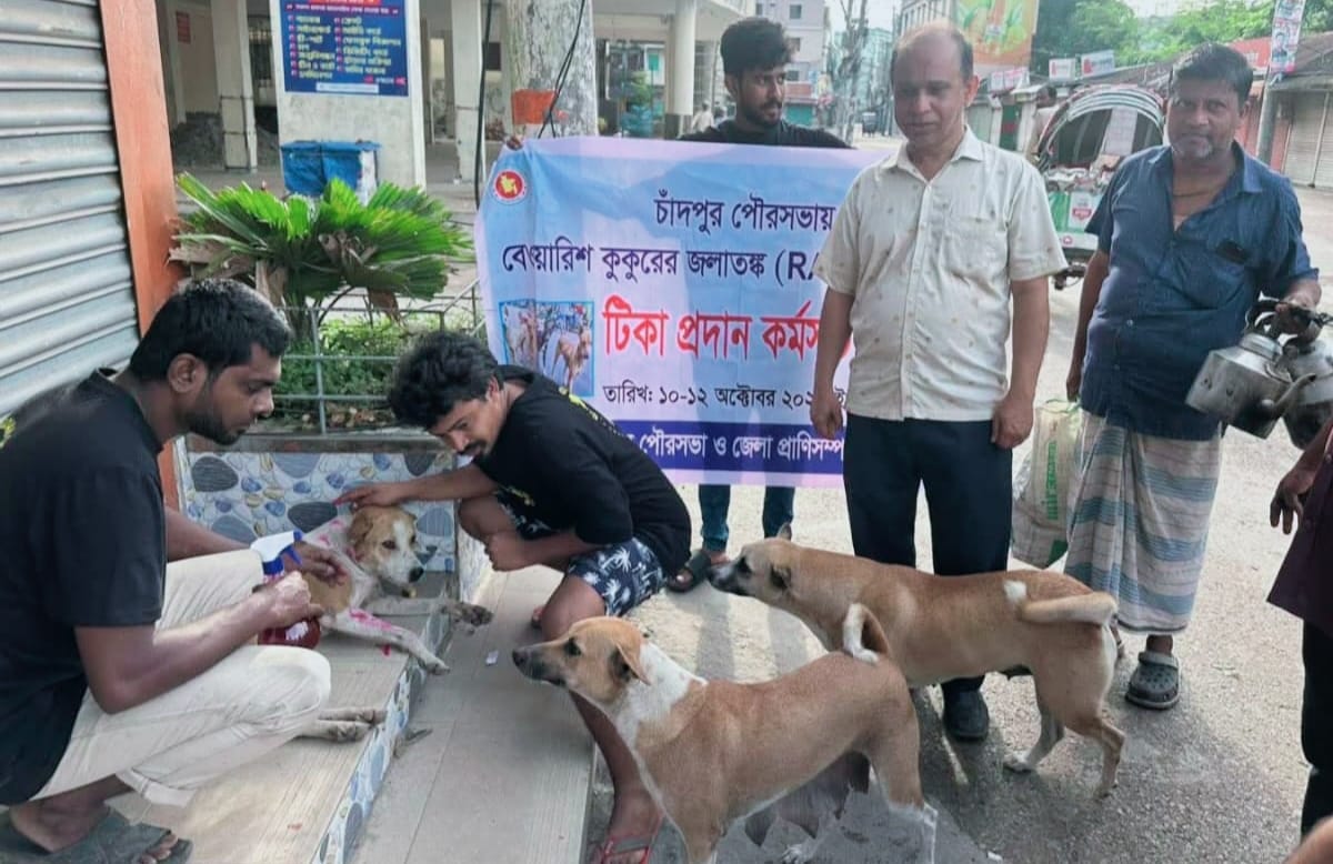 চাঁদপুর প্রতিনিধি: জনগণের নিরাপত্তা ও জনস্বাস্থ্যের স্বার্থে চাঁদপুর পৌরসভা ও জেলা প্রাণিসম্পদ দপ্তরের যৌথ উদ্যোগে শহরের বিভিন্ন পাড়া-মহল্লায় বেওয়ারিশ বা পথকুকুরকে জলাতঙ্ক টিকা (Rabies Vaccine) প্রদান কর্মসূচি শুরু হয়েছে।