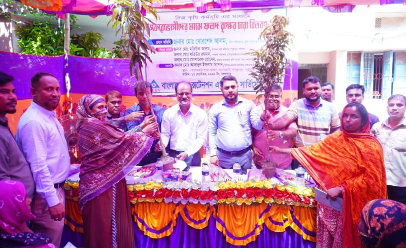 গাইবান্ধা বিজ এনজিও কৃষি কর্মসূচির উদ্যোগে ধাপের হাট শাখার উপকারীভোগীদের মাঝে ফলদ বৃক্ষের চারা বিতরণ